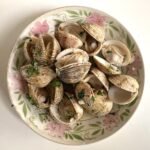 Clams cooked in white wine with garlic, shallots, olive oil and butter — and sprinkled with parsley and black pepper — make an elegant but simple dish that’s served in winter and spring in France. This is because clams are harvested over here from autumn to late spring. Elsewhere, it’s a different story, as you may know if you’ve ever been on a summer clambake. In New England, people may go clamming all year round.