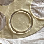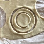 Now use the smaller cutter to cut rounds into the center of the four remaining large rounds — this gives you four small rounds and four rings.