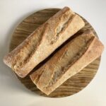 Another French touch could be the use of baguette, the traditional long, crusty loaf, but this is not essential. Any bread may be used as long as its flavor won’t overwhelm the stuffing, i.e. rye and pumpernickel are best avoided. Most recipes call for stale bread, but in this one you can use fresh bread and dry it out in the oven — much faster.